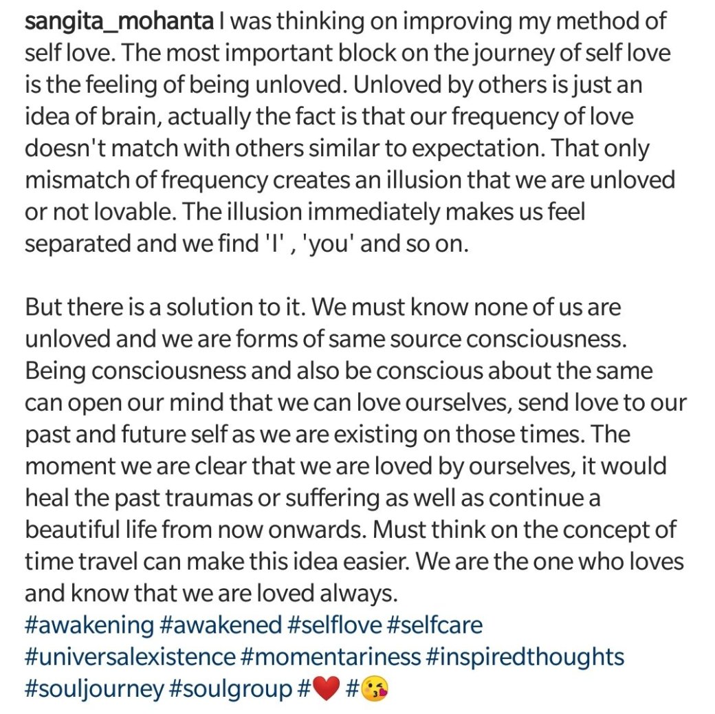 Self Love.. February 17, 2019February 17, 2019 / Sangita Instagram profile: sangita_mohanta Share this: Click to share on X (Opens in new window) X Click to share on Facebook (Opens in new window) Facebook Like Loading... Related